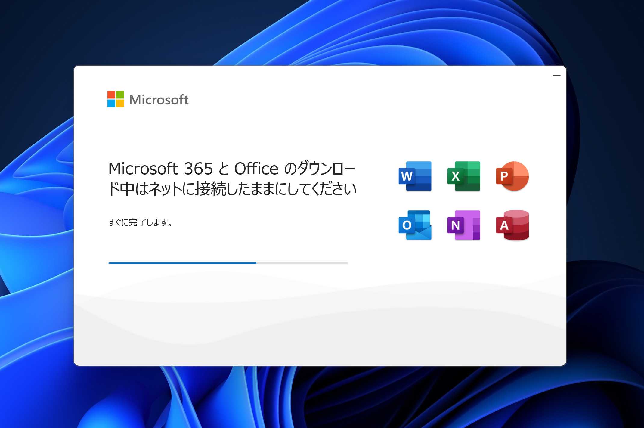 下記の Office インストール画面が表示されたら、完了するまでそのままお待ちください。