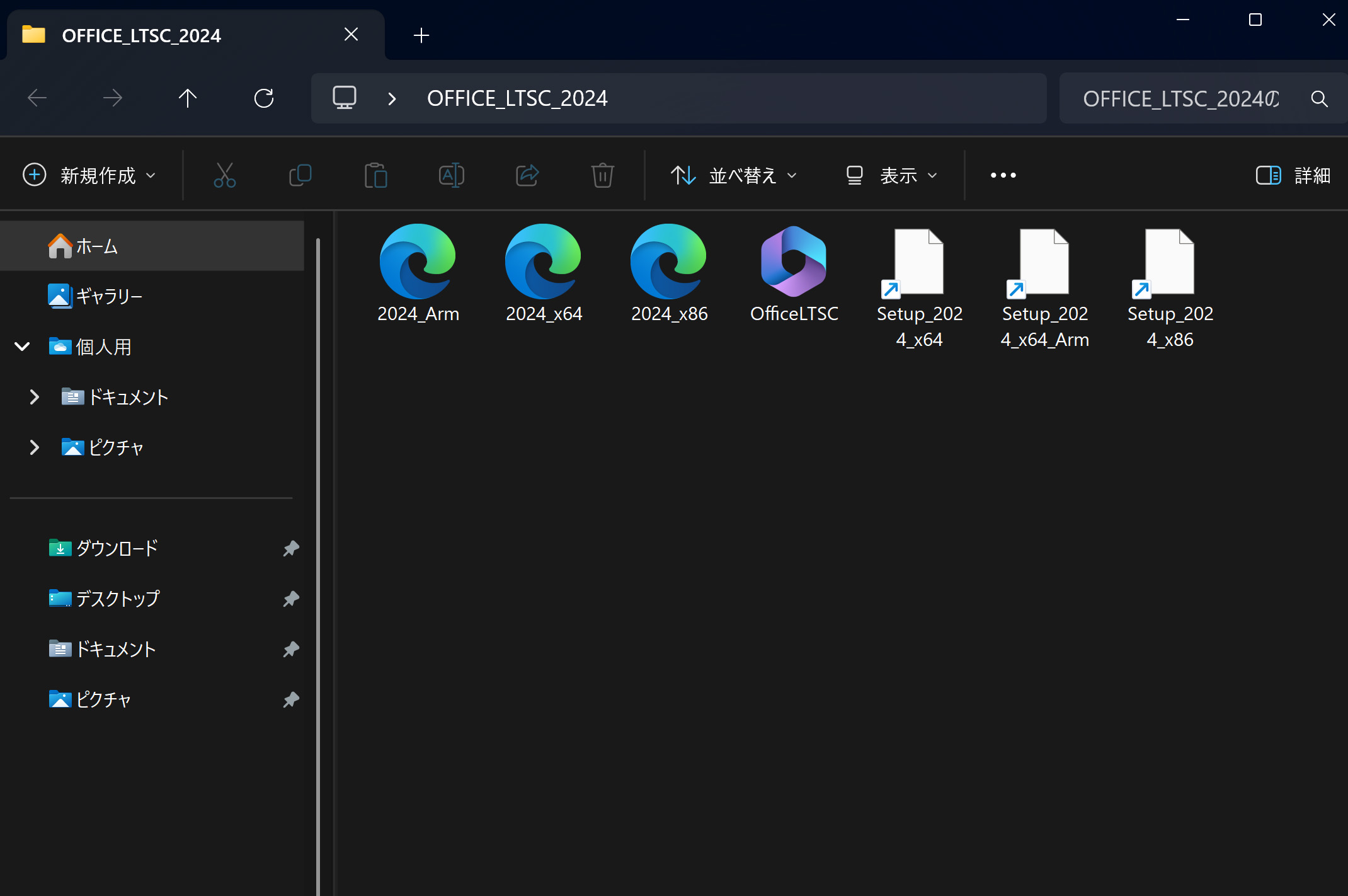 ❷ 「OFFICE_LTSC_2024」ZIP ファイルを保存後、デスクトップなど任意の場所に解凍します。